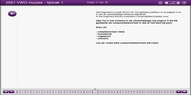 - Klik op de link om naar de opdracht te gaan: https://vo-oefenomgeving.facet.onl/facet-openbaar-portaal/oefenen/VWO/muziek