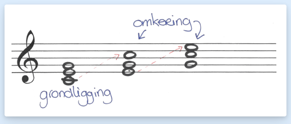 Een akkoord kan in de grondligging gespeeld worden. De grondtoon is dan de laagste noot van het akkoord. Een akkoord kan ook in een omkering gespeeld worden. Er ligt dan steeds een andere noot uit het akkoord onderin. In welke omkering een akkoord ook wordt gespeeld, het blijft hetzelfde akkoord.