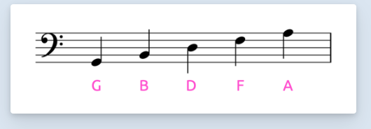 Vind je het lastig om de namen van de noten te onthouden? Kijk dan naar de afbeelding hieronder en gebruik het ezelsbruggetje voor alle noten op de lijnen: Grote Beren Die Fietsen Allemaal.